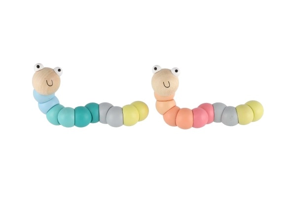 Este gusano/oruga de madera está formado por segmentos de colores lisos que se enlazan entre sí y permiten doblarlo fácilmente en distintas formas. Gracias a sus agradables tonos pastel y a su carita sonriente, los niños se encariñarán con él de inmediato. Ideal para un juego divertido y el desarrollo natural de la motricidad fina y la creatividad.