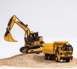 El brazo con cuchara, la cabina giratoria y las orugas diseñadas de forma realista aportan una experiencia auténtica de manejo de una máquina de construcción.