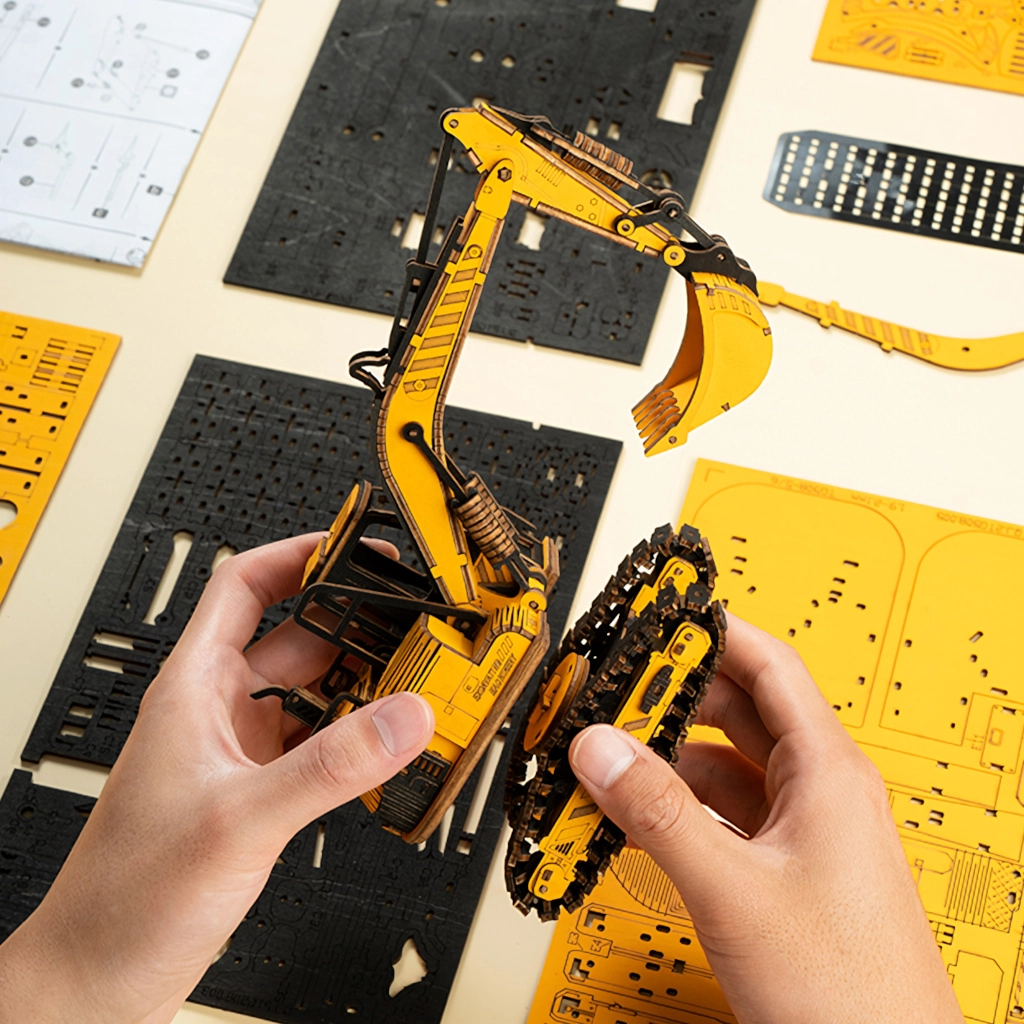 El modelo de excavadora de madera de la marca ROBOTIME sumerge a niños y adultos en el mundo de la maquinaria de construcción. Con detalles realistas, un brazo funcional y una cabina giratoria, disfrutarás no solo del montaje, sino también del posterior juego y exhibición. El set incluye instrucciones detalladas, para que puedas montar el modelo fácilmente en aproximadamente 2,5 horas.