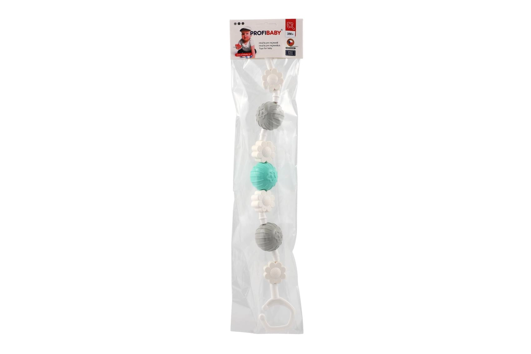 Este adorable juguete colgante para cochecito con bolitas giratorias y flores cautiva al bebé a primera vista. Gracias a las pinzas en ambos extremos, se fija fácilmente al cochecito o a la cuna, y el suave sonajero junto con las distintas texturas aportan estimulación sensorial. Ligero, seguro y fácil de limpiar: el compañero ideal para los paseos.