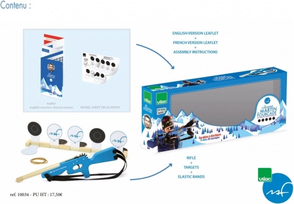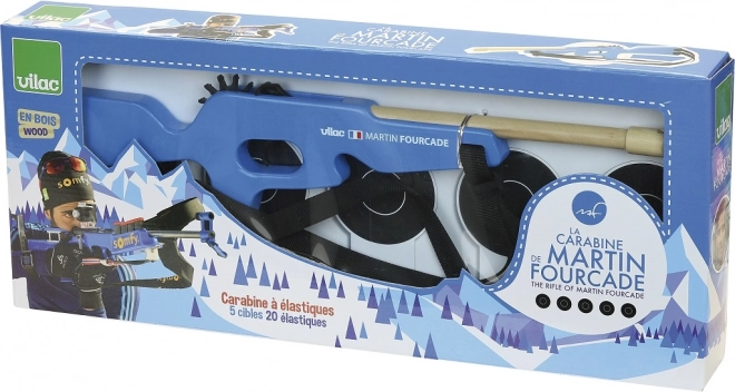 Descubre la magia del biatlón con la rifle de biatlón de Martin Fourcade. Este juguete está diseñado para entusiasmar a los jóvenes deportistas que no temen al frío ni a la nieve. El biatlón es en Chequia tan popular como el hockey y el esquí, y esta carabina ofrece una oportunidad única de práctica para los pequeños fans de este deporte.