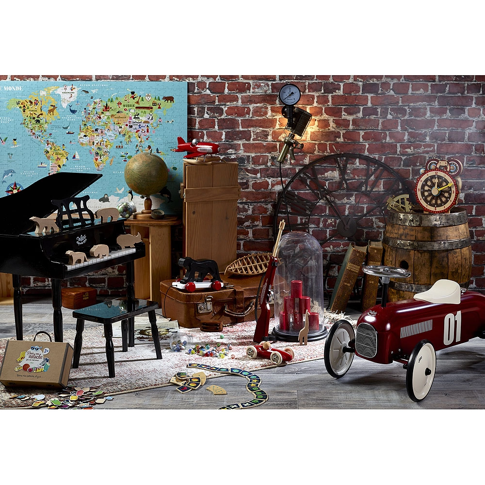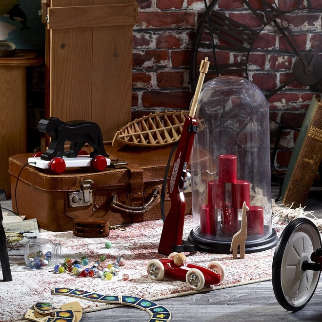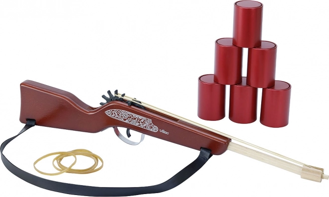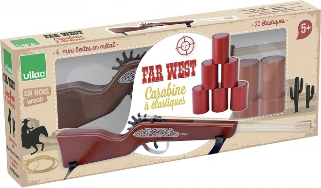 ¡Conviértete en un pequeño vaquero con esta elegante rifle de madera de VILAC! El set incluye una rifle de gomas, 20 gomas y 6 mini latas para una puntería divertida y segura. Un gran juego para practicar precisión, desarrollar la motricidad y el espíritu competitivo para niños a partir de 5 años.