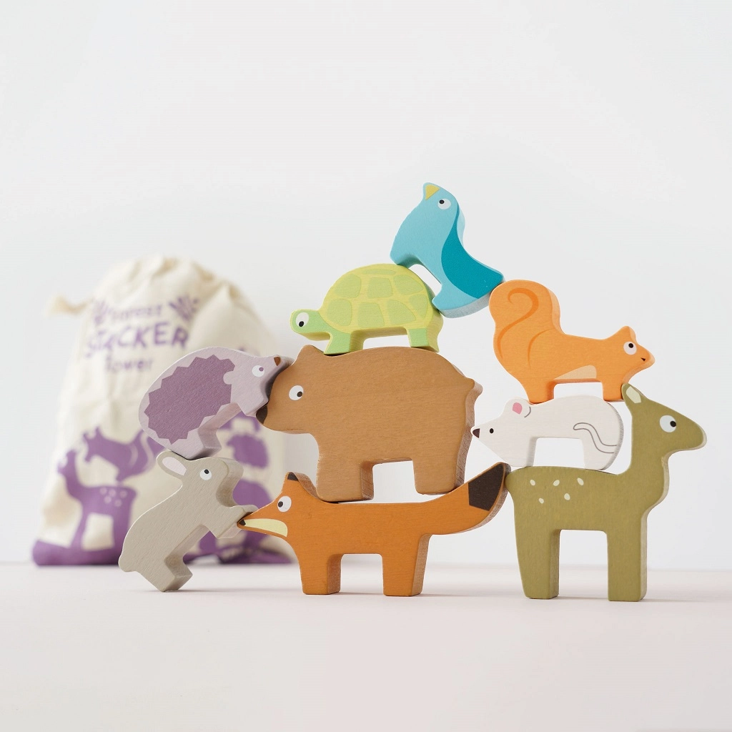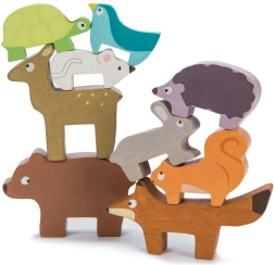Este rompecabezas de madera con animales del bosque de la colección PETILOU está diseñado para los pequeños exploradores. Los niños pueden apilar el zorro, el conejo, el erizo, el oso, el ratón, la tortuga, la ardilla, el cervatillo y el pajarito en una divertida torre, practicar el equilibrio y observar cómo la torre crece… y a veces se cae con una sonrisa. Gracias a su agradable tamaño, las figuritas se adaptan perfectamente a las manos infantiles.