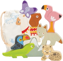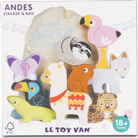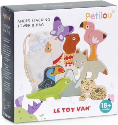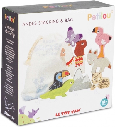 Esta torre apilable andina lleva la aventura de la montaña directamente a la habitación infantil. El set incluye robustas figuras de animales de madera (p. ej., llama, flamenco, tucán, lagartija, mariposa, perezoso) y una pieza de montaña, que pueden apilarse, equilibrarse y combinarse en divertidas composiciones.
