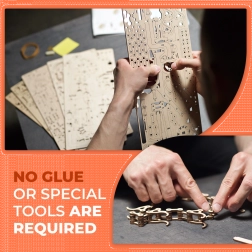 El montaje es preciso y entretenido gracias a 400 piezas cortadas con precisión y a las instrucciones detalladas. El modelo ofrece la posibilidad de conexión modular: une de dos a cuatro pistas y crea un conjunto mecánico sincronizado, lleno de dinamismo y competición con amigos.