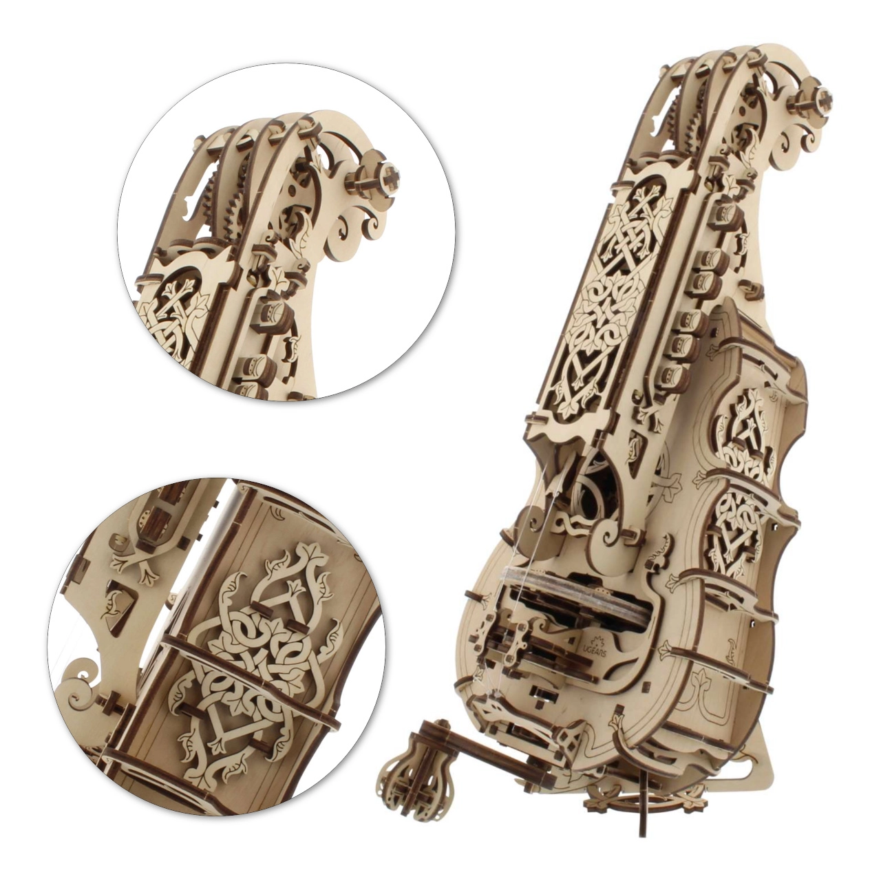 Este singular kit de madera combina el entretenimiento del modelismo y la experiencia musical en uno. Inspirada en el arte medieval, la zanfona de Ugears incorpora el movimiento de un tren epicicloidal, ornamentos decorativos y, sobre todo, una tocabilidad real: haces sonar el instrumento girando la manivela, afinas con clavijas dotadas de engranajes reductores y controlas la altura del sonido con seis teclas.