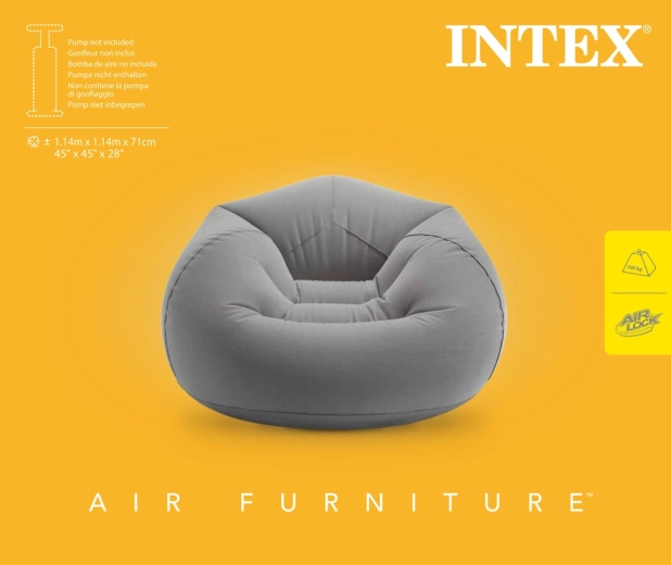 Gracias a su estructura inflable, el sillón es ideal para el salón, el cuarto de estudiantes, la casa de campo o una zona de relax en la oficina. Se infla y desinfla fácilmente, por lo que podrás transportarlo y guardarlo sin esfuerzo. El acabado en gris combina con la mayoría de decoraciones y realza las líneas limpias de un hogar moderno.