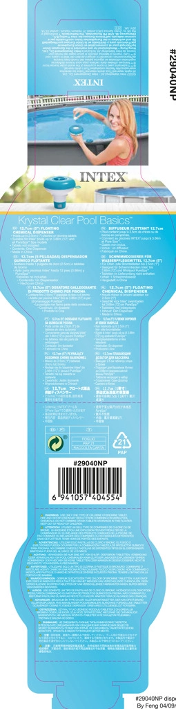 El dispensador flotante de cloro Intex es un producto práctico y cómodo que ayuda a mantener limpia la piscina o el jacuzzi. Este pequeño dispositivo se llena con tabletas químicas y flota en la superficie del agua, liberando gradualmente los agentes limpiadores. Usándolo antes del baño, podrá disfrutar de nadar en agua limpia. Equipado con una tapa de doble fase que protege el contenido de los niños, brinda tranquilidad y seguridad.