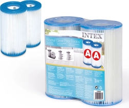 Mantén el agua de tu piscina elevada cristalina con el juego de 2 cartuchos de filtro originales INTEX tipo A. El papel plisado captura eficazmente las impurezas, los cartuchos son 100% compatibles con las bombas INTEX 28603–28638, su sustitución es rápida y sin herramientas y, con el mantenimiento adecuado, duran hasta 2 semanas de uso.