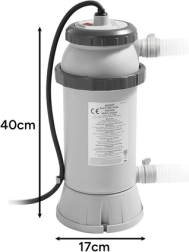 Práctico calentador eléctrico de agua INTEX de 3 kW para piscinas elevadas con diámetro de 244–457 cm, garantiza un aumento de temperatura rápido y cómodo. Es compatible con bombas de 2006–3785 l/h, ofrece instalación fácil sin herramientas y protección de seguridad gracias al interruptor RCD. Alimentación 230 V, manejo sencillo con un solo botón y mantenimiento fiable de la temperatura entre 17–34 °C hacen de este calentador una elección ideal para piscinas familiares.