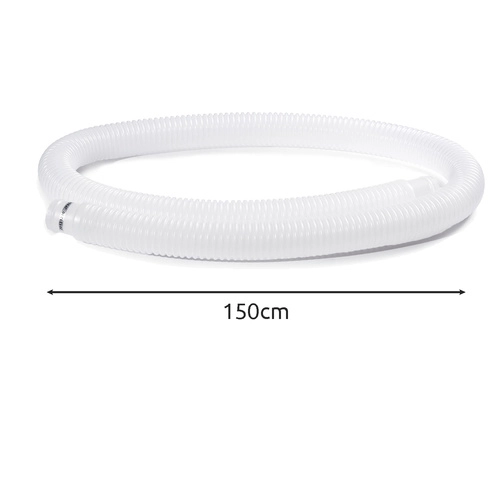 Manguera de piscina universal INTEX de 1,5 m de longitud y 32 mm de diámetro, ideal para conectar a sistemas de filtración, calentadores de agua y generadores de cloro. Gracias a su construcción acanalada es extraordinariamente flexible, se guía fácilmente alrededor de obstáculos y se adapta a distintas configuraciones. Fabricada en plástico resistente con protección UV para una larga vida útil en exteriores.