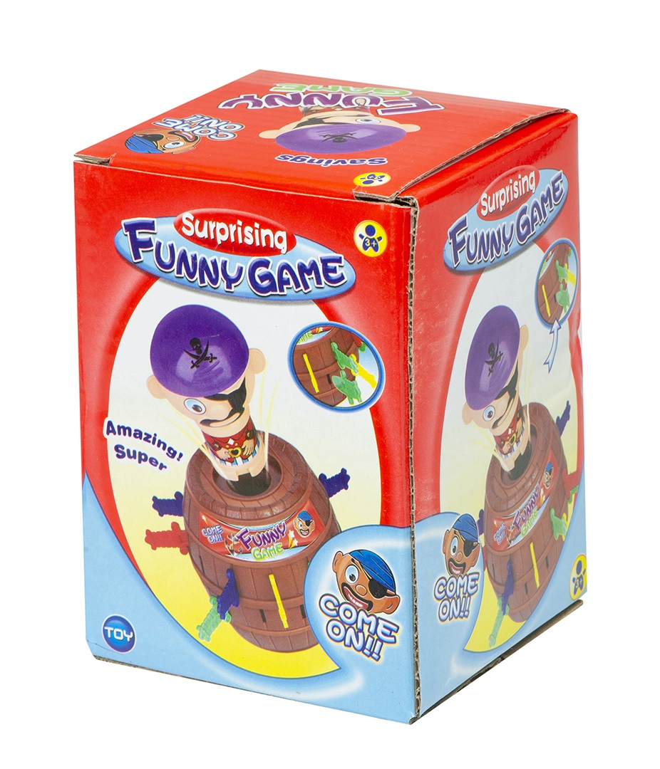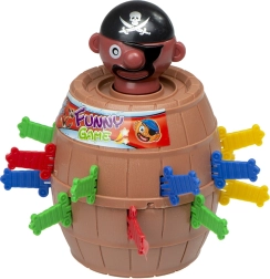 Un juego pirata favorito para niños y adultos. Coloca al pirata en el barril, reparte las espadas e insértalas por turnos en los orificios. Uno de ellos activará la sorpresa: el pirata salta y hace reír a todo el grupo. Ideal para noches en familia y fiestas infantiles; fomenta el reflejo y la comunicación en equipo.