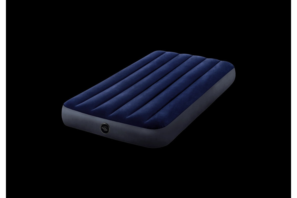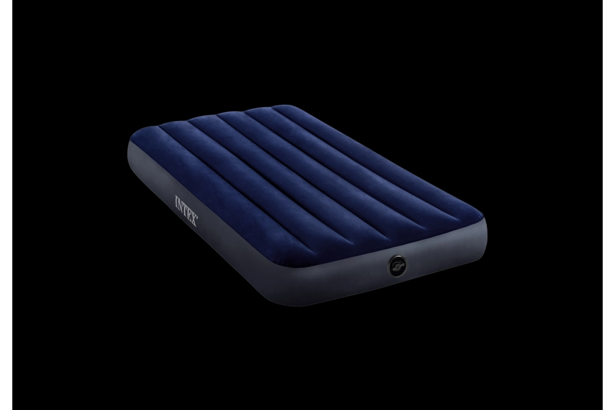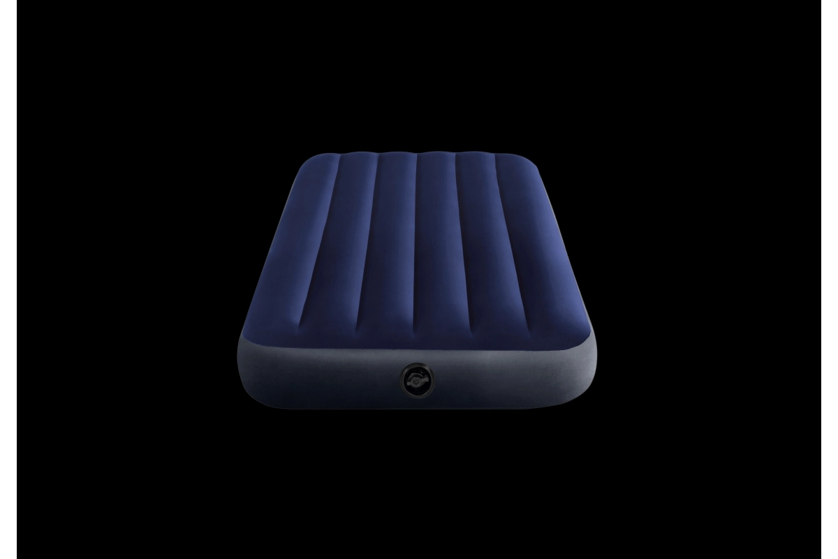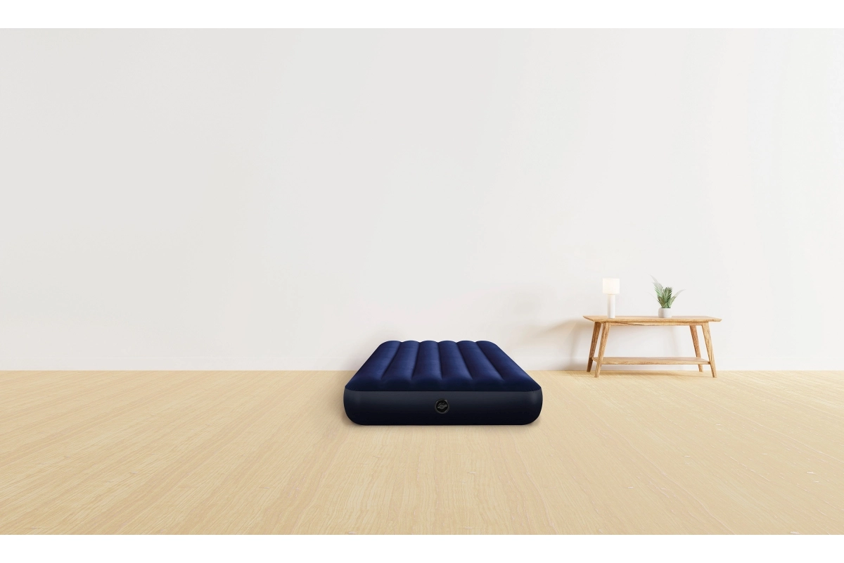 Práctico colchón inflable para una persona con dimensiones de 191 × 99 × 25 cm de la marca INTEX, ideal para uso en casa y viajes. El PVC resistente con terciopelo aterciopelado en la superficie garantiza un tacto agradable y mejor agarre de la sábana, mientras que la tecnología Dura‑Beam Fiber ofrece un soporte estable y una larga vida útil. Incluye parche de reparación.