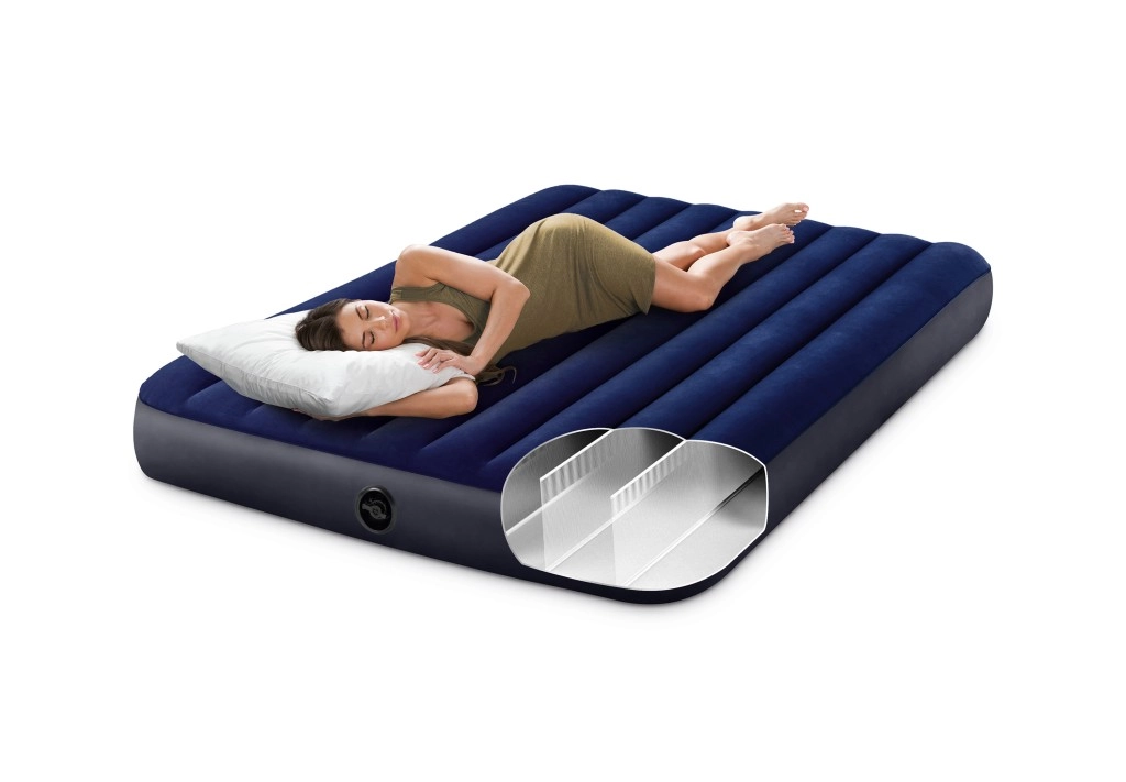 Disfruta de un descanso cómodo en el colchón doble INTEX con agradable superficie flocada (terciopelo), suave al tacto y que ayuda a mantener la sábana en su sitio. El colchón está fabricado en PVC resistente y sus dimensiones lo hacen ideal para invitados, caravana y camping.