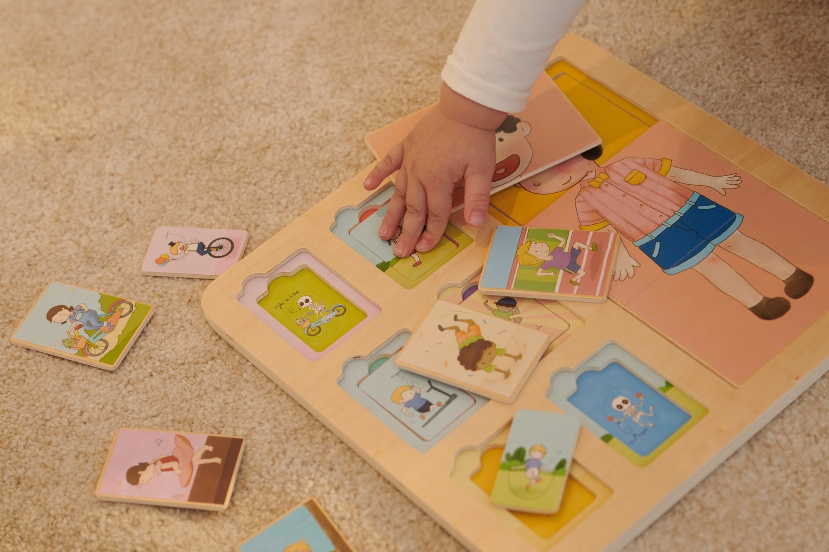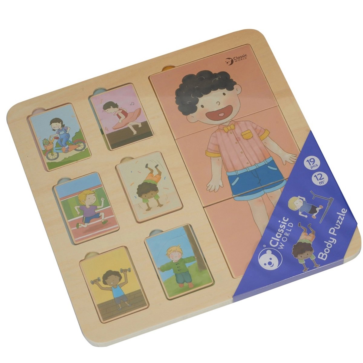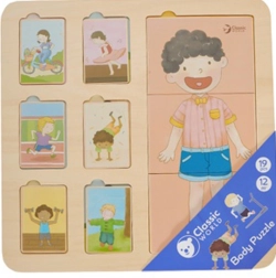 El rompecabezas de madera del cuerpo humano de Classic World es un juguete ideal para niños a partir de 12 meses. Consta de una base y 18 piezas de colores que representan a niños en distintas actividades. Los pequeños deben colocar las piezas en los lugares correctos para formar la imagen completa.
