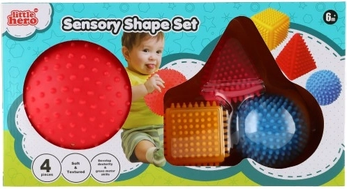 El set sensorial de formas geométricas LITTLE HERO encantará a cualquier niño curioso. Las superficies variadas y los colores llamativos estimulan los sentidos, mientras que la textura con púas facilita el agarre incluso a las manos más pequeñas. Al manipular las diferentes formas, los niños entrenan de manera natural la coordinación mano-ojo y aprenden a reconocer las diferencias entre formas y colores.