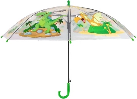 Un alegre paraguas infantil con cúpula transparente y coloridos motivos de dinosaurios convierte los días lluviosos en diversión. Gracias a su apertura automática, estructura ligera y cómoda empuñadura verde, se utiliza con facilidad y se adapta perfectamente a la mano de los niños.