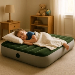 Gracias a la práctica válvula 2 en 1, el colchón se infla y desinfla fácil y rápidamente en cuestión de minutos. Una vez desinflado, es compacto y ligero, por lo que se guarda fácilmente en un armario, bolsa de viaje o maletero. Una gran solución para invitados, acampada, casa de campo y jardín.