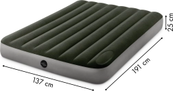 Práctico colchón inflable doble de 191 × 137 × 25 cm, ideal para el hogar y para acampar. Ofrece superficie de terciopelo agradable al tacto, bomba de pie integrada para inflarlo en cualquier lugar y tecnología Dura‑Beam Fiber para un soporte estable y una larga durabilidad.