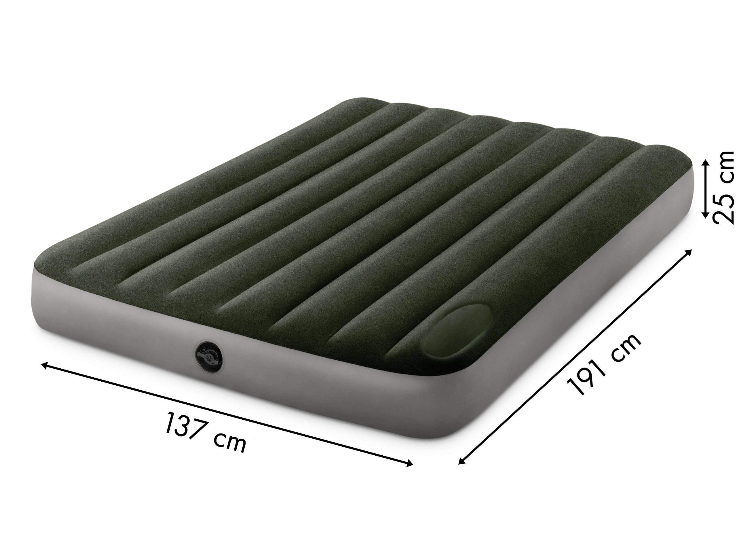 La bomba de pie integrada permite un inflado rápido sin electricidad; en caso necesario, también se puede usar una bomba externa. El colchón es una excelente opción como cama supletoria para invitados y para viajes y acampadas.