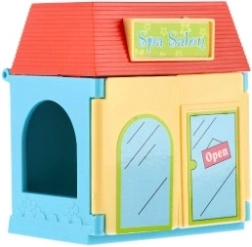 Un pequeño salón de belleza con puertas abatibles y accesorios que inspira juegos de rol y desarrolla la imaginación y las habilidades comunicativas.
