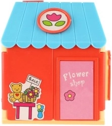 Una casita alegre con motivos florales y una caja registradora que enseña a los niños a combinar colores, arreglar y atender a los clientes.
