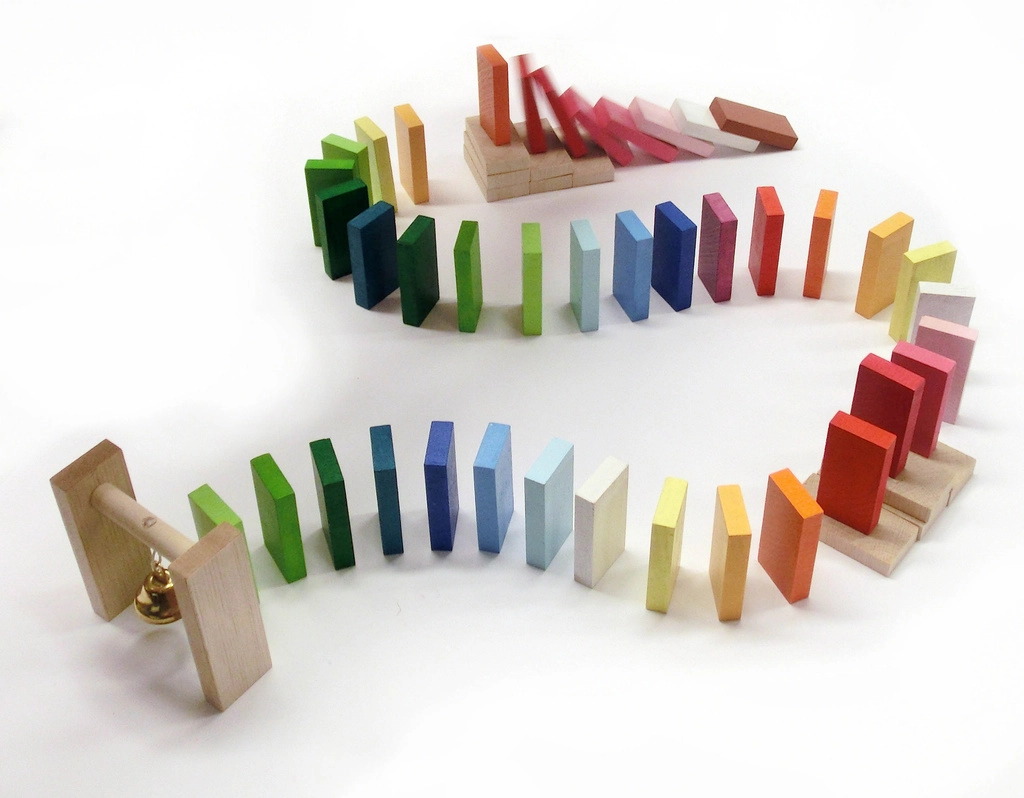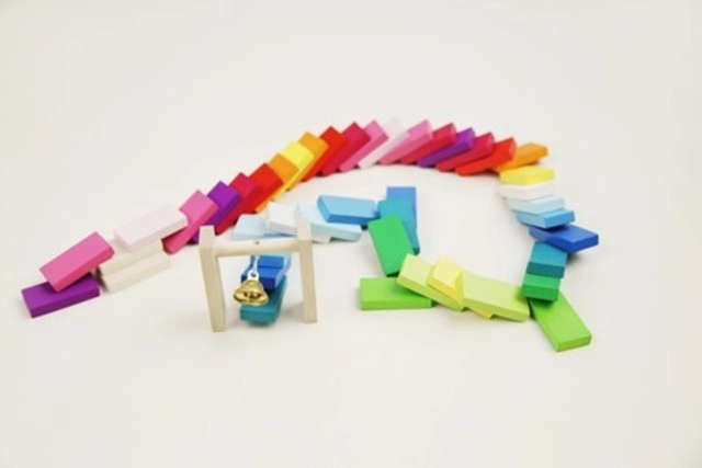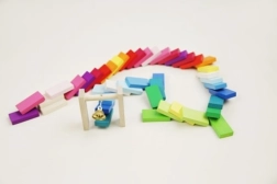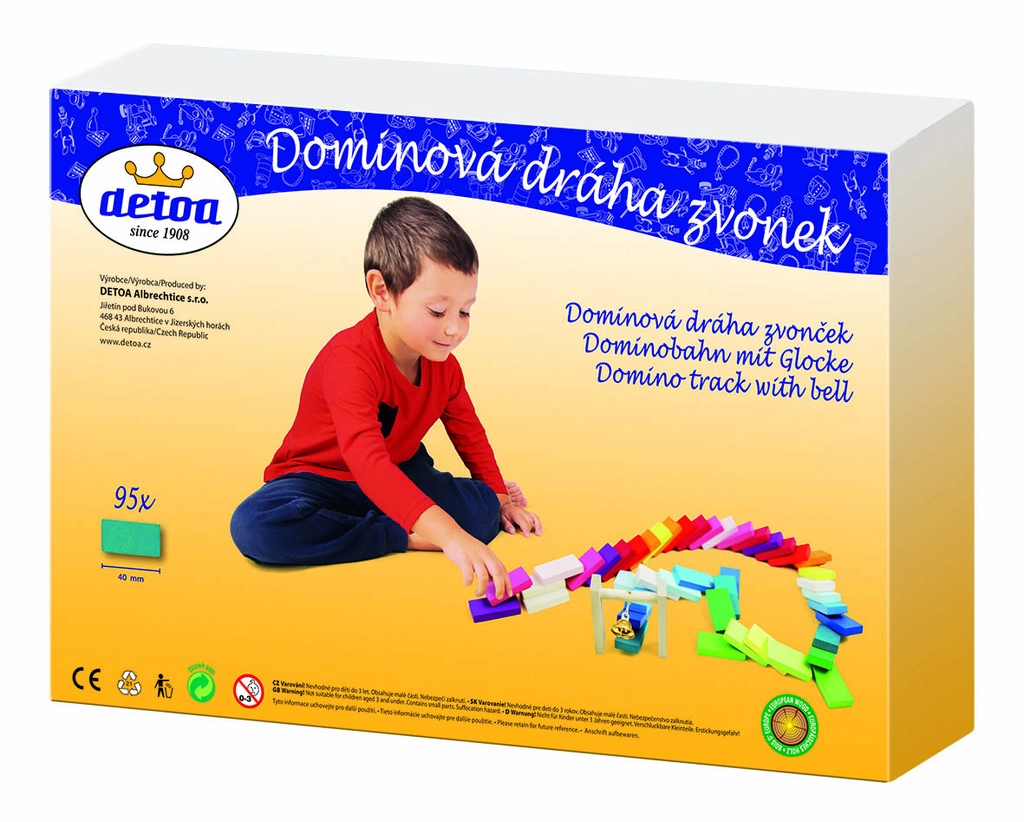 ¡Lleva a casa diversión sin fin con la pista de dominó Detoa con campanilla! Este set creativo, compuesto por 95 piezas de colores, es ideal para todos los pequeños constructores. Crear recorridos propios y observar los efectos de la caída del dominó fomenta la paciencia y el pensamiento lógico en los niños.