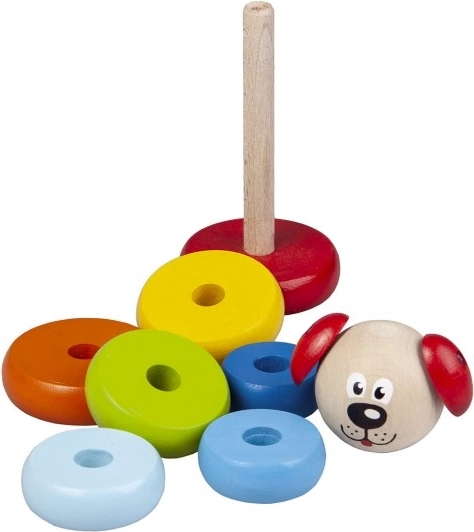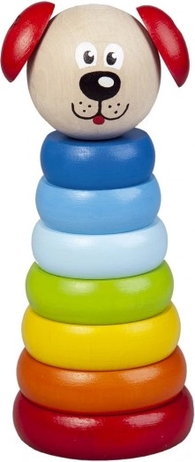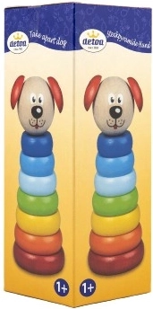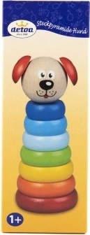 Pirámide Perrito Detoa hecha de piezas de madera que apoya el desarrollo de la motricidad fina y la imaginación de los niños desde 1 año. Está fabricada según estrictas normas de seguridad de la UE.