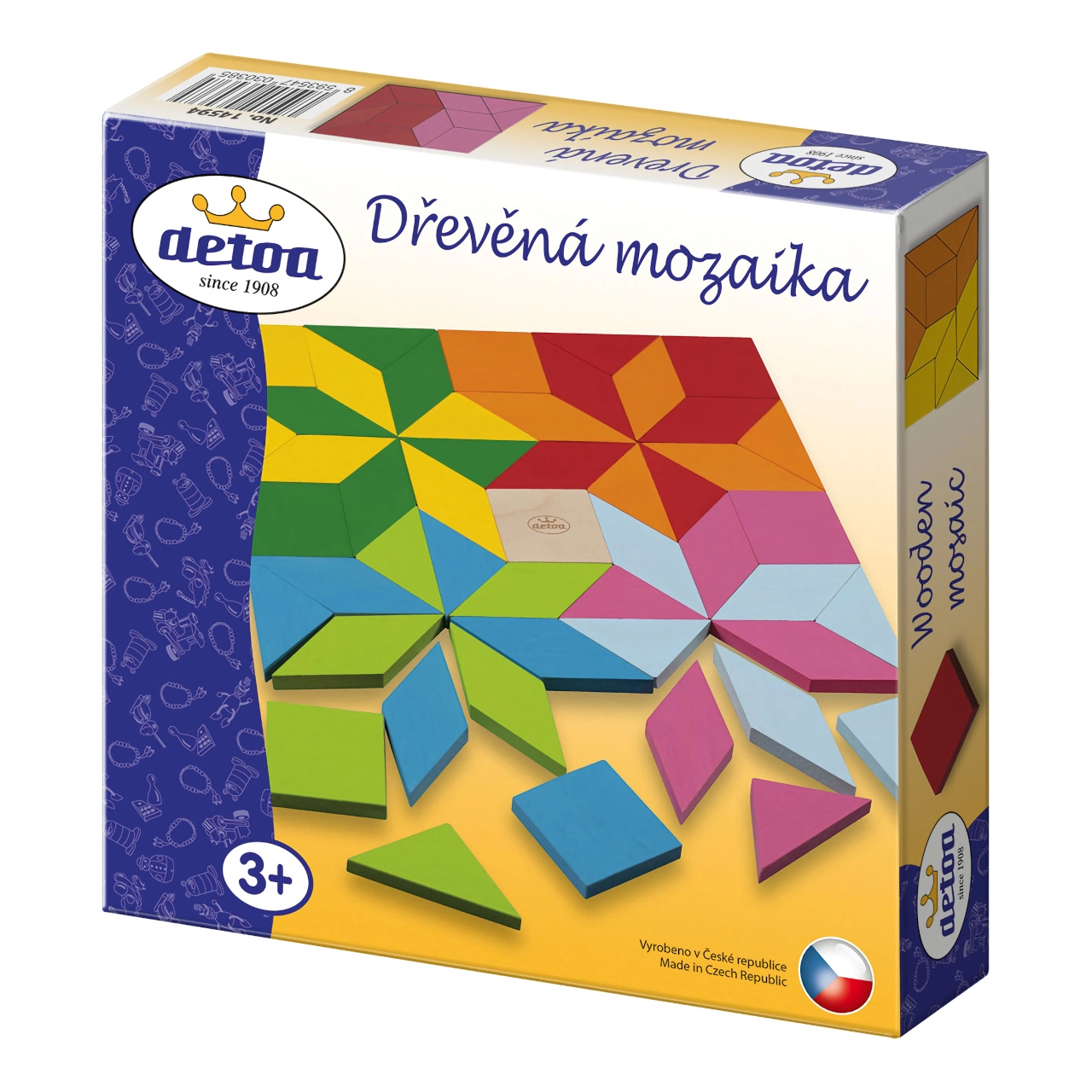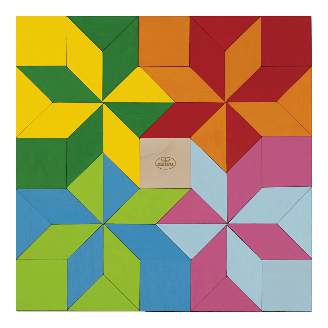 El mosaico Detoa es un clásico juego didáctico de madera resistente. Los niños colocan las piezas de colores en innumerables composiciones, practican la coordinación ojo–mano y descubren formas, colores y relaciones geométricas sencillas. El juego fomenta la concentración y la paciencia, y aporta la alegría de crear.