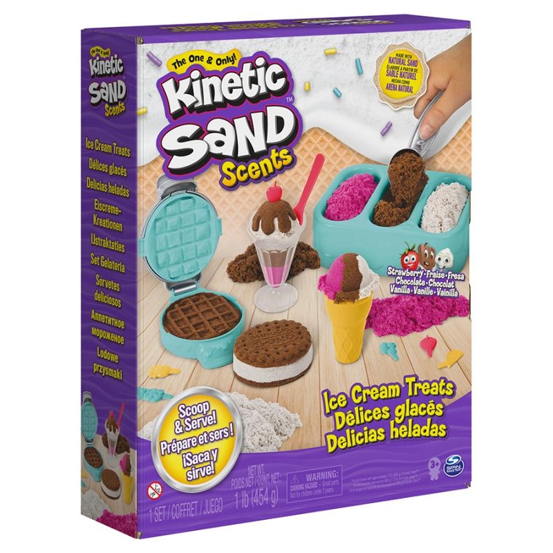 La fórmula especial de Kinetic Sand se puede apretar, cortar y moldear fácilmente, ideal para bolas de helado y postres realistas.