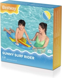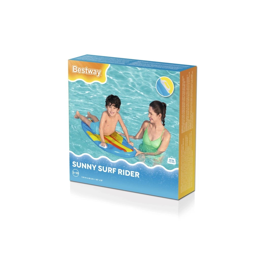 Prepárese para ofrecer a los niños infinitas dosis de diversión veraniega en el agua. La tabla inflable con forma de surf proporciona seguridad y comodidad durante los juegos y los primeros intentos de natación. Gracias a dos asas ergonómicas, los niños pueden sujetarse fácilmente y sentirse más seguros en el agua.