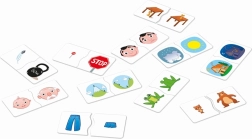 Descubrid el mundo de los opuestos de forma lúdica: pequeño – grande, día – noche, alto – profundo y muchos más. Los niños separan y mezclan todas las piezas y luego buscan las parejas correctas. La forma ondulada de los bordes indica si las partes realmente encajan: al unirlas encajan a la perfección, lo que les da retroalimentación inmediata y la alegría del éxito.