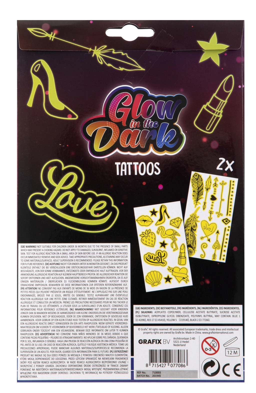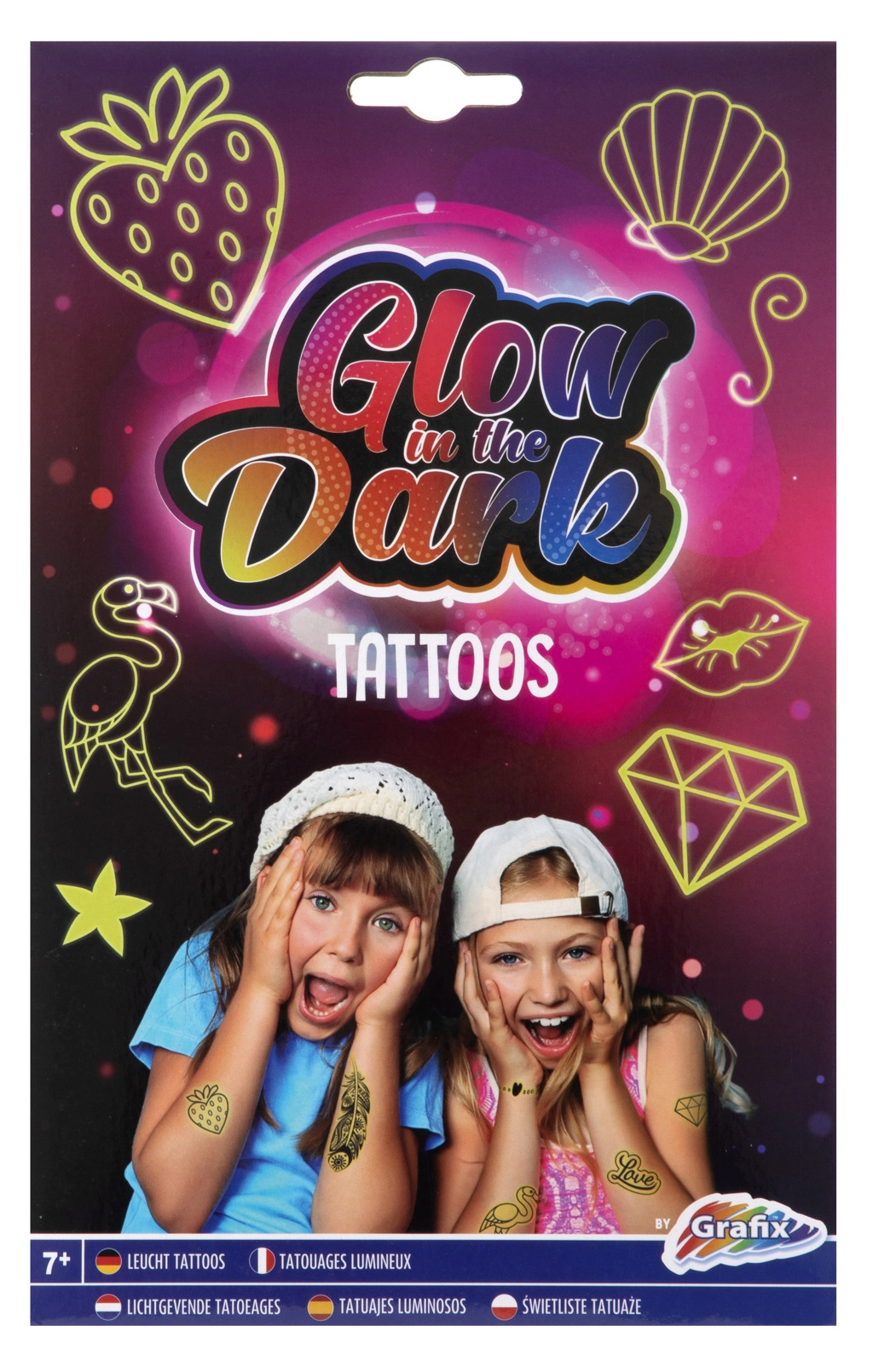 Este set de tatuajes luminosos es ideal para niñas que quieren añadir un toque de brillo a su estilo. Disfruta de los distintos motivos disponibles en el paquete, que incluye dos hojas de tatuajes. Simplemente recorta, coloca sobre la piel, humedece con una esponja y listo. Su uso es rápido y divertido.