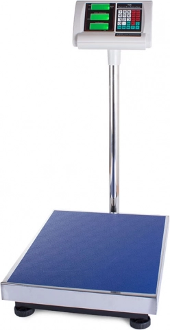 Báscula electrónica de plataforma robusta con capacidad de hasta 300 kg y precisión de 50 g, equipada con pantalla LCD con retroiluminación, 8 memorias de precios, funciones TARE/ZERO y conteo de piezas. Gracias a la batería recargable integrada y a la alimentación por red, es ideal para almacén, operación y trabajo de campo. No apta para mediciones oficiales (no legalizada).
