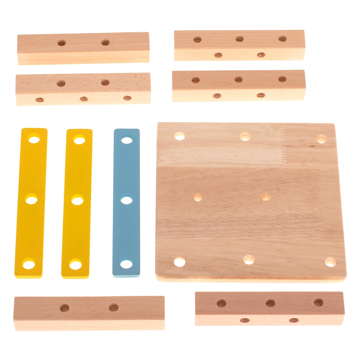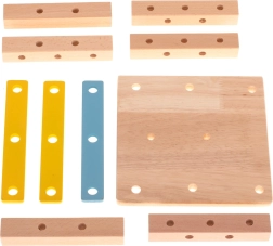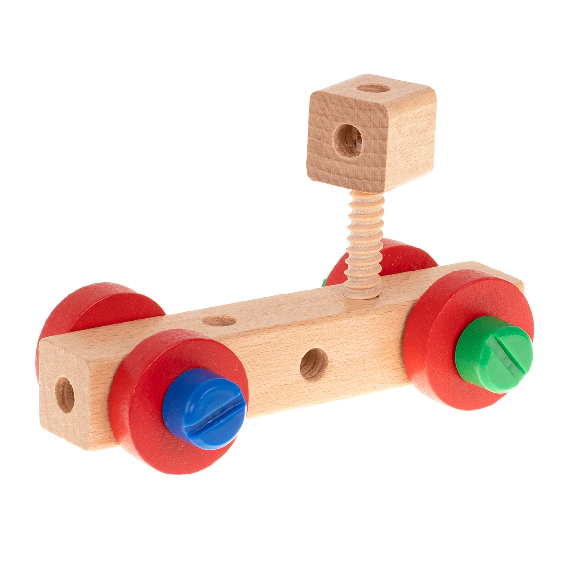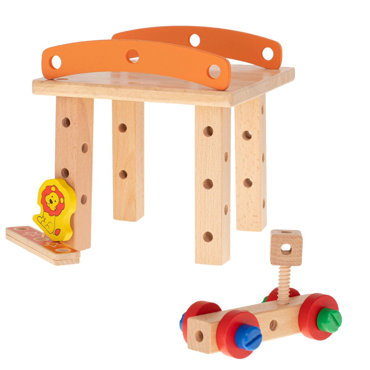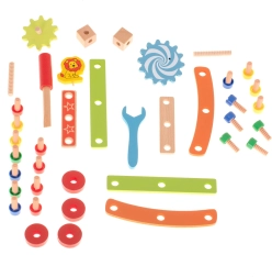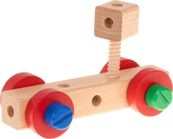 Incluye destornillador de madera, llave, tornillos y tuercas: los niños aprenden a unir correctamente las piezas y desarrollan la motricidad fina.
