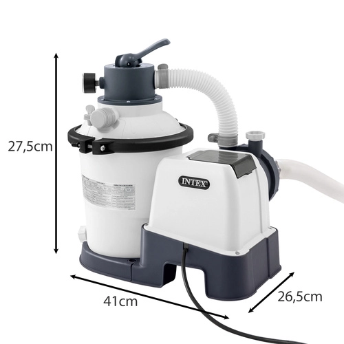 La potente bomba de filtración de arena INTEX con caudal de 3500 l/h mantiene el agua de la piscina cristalina. Gracias a la Tecnología de Aireación Hidráulica garantiza un mejor oxigenado, mayor claridad y una mejor calidad del agua en general. Es eficiente, fiable e ideal para piscinas elevadas medianas y grandes.