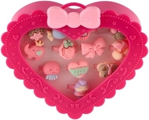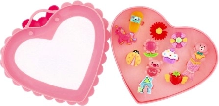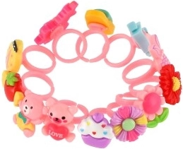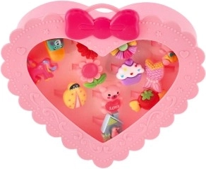 El set de anillos es ideal para pequeñas princesas que aman la moda y quieren llevar un anillo diferente en cada dedo. Cada uno de los 12 anillos tiene un diseño único que puede incluir flores, frutas, lazos o animalitos.