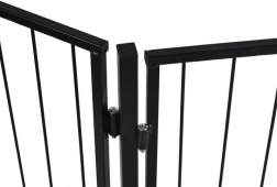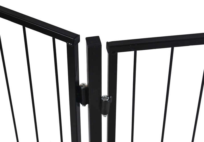 La instalación es rápida y fiable gracias al anclaje a la pared (el material de fijación está incluido). Las barreras son compatibles entre sí: puedes ampliar el espacio combinando dos juegos para crear una zona de protección mayor. El diseño resistente en negro encaja tanto en interiores modernos como clásicos.