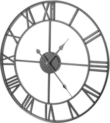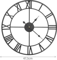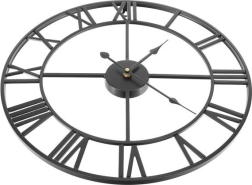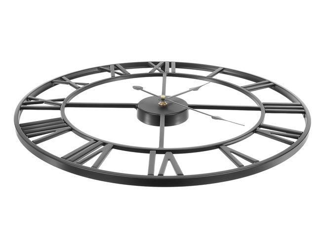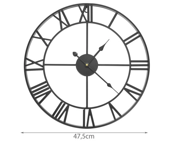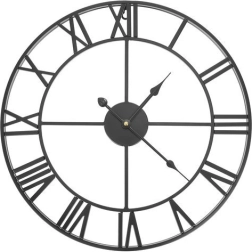Este reloj de pared de metal en estilo loft/retro destaca por su marco abierto, que deja lucir el color de tu pared, y por sus marcados números romanos. El acabado en negro se combina fácilmente con interiores modernos y clásicos, aportando un toque atemporal.