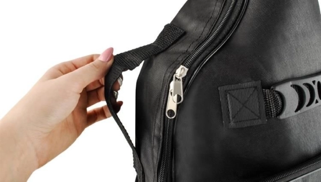 Dos bolsillos frontales: el superior para accesorios pequeños (cejilla, cables, púas) y el inferior para partituras en formato A4, mantienen todo organizado y a mano. Correas ajustables y asa lateral aseguran un transporte cómodo a pie y en transporte público. La cremallera de doble cursor facilita una apertura rápida y guardar el instrumento.