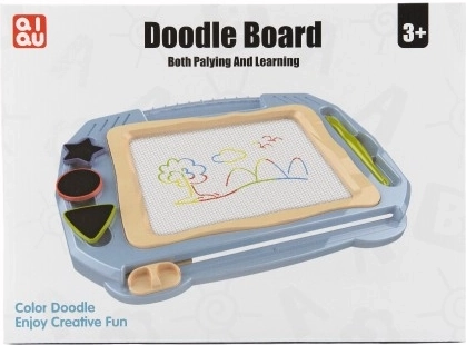 Esta práctica pizarra magnética es ideal para los primeros trazos, el dibujo y el aprendizaje de formas y colores. Gracias a su diseño ligero y al asa integrada, es perfecta para casa y para llevar de viaje. Los niños ejercitan la motricidad fina, la imaginación y la coordinación ojo–mano.