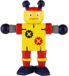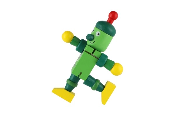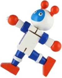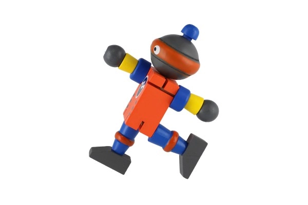 Estos coloridos robots de madera son ideales para los primeros juegos de construcción y de roles. Gracias a las uniones elásticas, se doblan con facilidad, mantienen las poses e invitan a los niños a crear historias con imaginación. La madera resistente y los bordes suaves garantizan un manejo seguro y agradable incluso para los más pequeños.