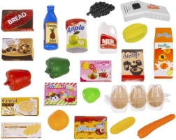 Incluye frutas y verduras coloridas, bebidas, dulces, huevos y cajitas con alimentos. Los accesorios realistas fomentan el aprendizaje a través del juego, el reconocimiento de alimentos y la clasificación. La estructura estable de plástico es resistente y segura para el juego diario.