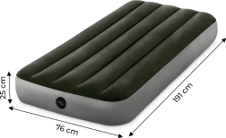Disfruta de la comodidad en tus viajes o en casa con este colchón inflable de la marca Intex. Con dimensiones de 191x76x25 cm, es perfecto para niños o una sola persona en movimiento, ya sea en hotel o de camping. Fabricado en PVC resistente y recubierto con un agradable terciopelo impermeable.