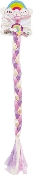 Toda niña sueña con tener el pelo largo y de colores. Gracias a esta goma con un postizo arcoíris, adornado con lentejuelas, podrá lucir un cabello de cuento.