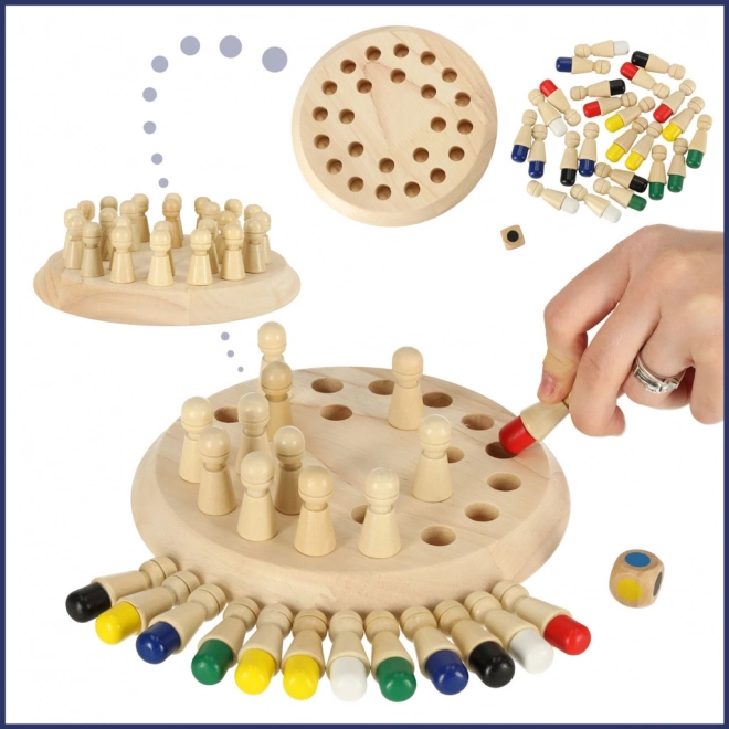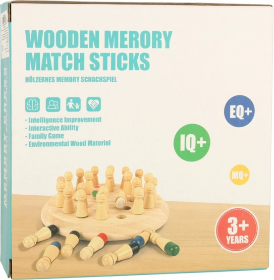 Este juego de memoria de madera combina reglas simples con un entrenamiento inteligente del cerebro. Primero, los jugadores memorizan los colores de las clavijas, luego las giran y, según el resultado del dado, buscan el color correcto. Gana puntos quien mejor recuerde. El juego desarrolla la coordinación mano–ojo, la motricidad fina y la concentración.