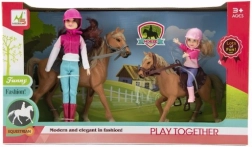 Este asombroso set es una elección ideal para cualquier niño que ame los caballos y sueñe con convertirse en jinete. El set incluye dos muñecas vestidas con ropa de equitación, incluidos cascos, listas para la aventura. Los materiales de calidad y resistentes aseguran que el set aguante incluso las sesiones de juego más exigentes.
