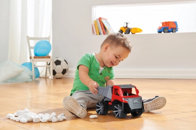 El volquete LENA TRUXX 2 es un juguete moderno para pequeños amantes de la tecnología. Ofrece funciones realistas que fomentan el juego creativo: el techo abatible da acceso a la cabina con la figura del conductor y el cajón basculante con seguro transporta y descarga la carga de forma segura justo donde se necesita.