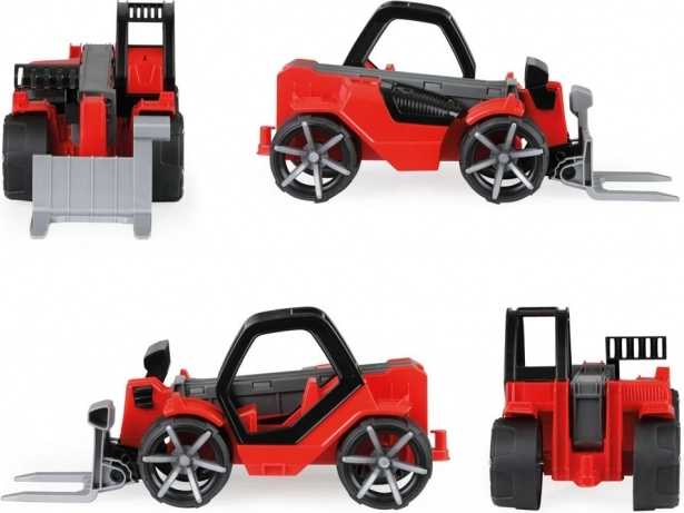 Esta cargadora telescópica está fabricada en plástico de alta calidad y ofrece una estructura sólida que resiste el juego intenso. Gracias a las ruedas engomadas con rodamiento silencioso, es ideal también para jugar en interiores. Con la cabina abatible y la figura activa, los niños pueden imaginar fácilmente que son verdaderos operadores de un vehículo de construcción.