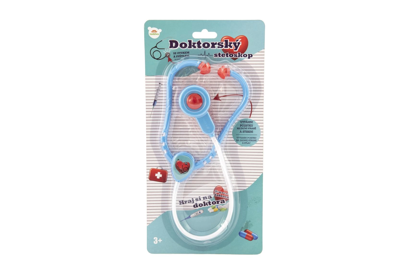 Ofrezca a los niños una experiencia realista en el papel de pequeño médico. Basta con colocar el estetoscopio sobre el “corazón” del paciente y sonará el efecto de los latidos, acompañado de una lucecita. El juguete está diseñado para ser fácil de usar y seguro para niños a partir de 3 años.